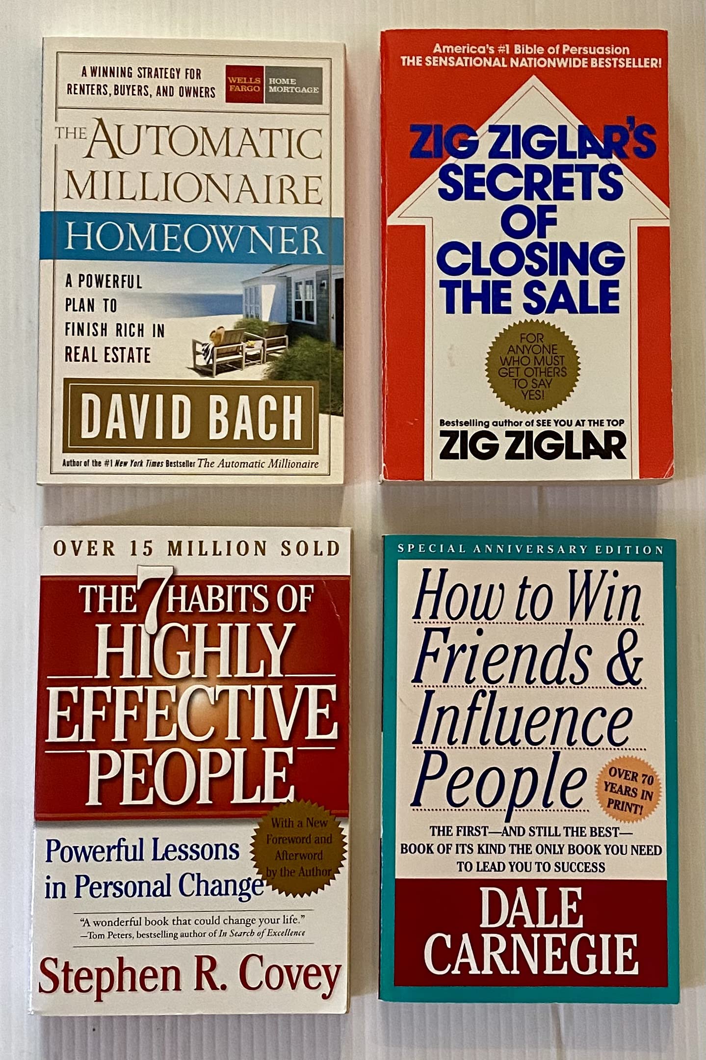 4 Books! 1) Automatic Millionaire Homeowner 2) Zig Ziglar's Secrets of Closing the Sale 3) The 7 Habits of Highly Effective People 4) How to Win Friends & Influence Peoplee