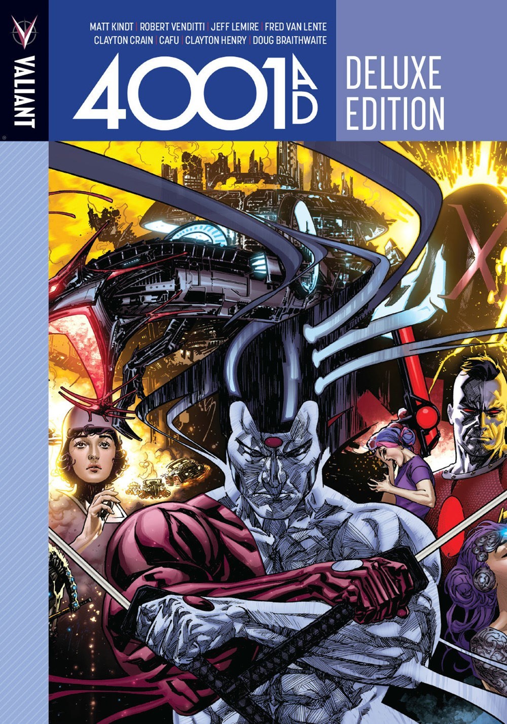 Dentro de cien años, Padre, la benévola inteligencia artificial que gobierna Japón, adquirirá consciencia propia. Para defender sus fronteras, Padre enviará Japón al espacio… donde sus habitantes vivirán en total aislamiento. Nuevo Japón se convertirá en un modelo de paz y prosperidad para el resto del mundo, que es cada vez más inestable. Dentro de cien años, Padre creará al primer Rai, lo que dará inicio a un linaje de héroes tecnológicamente mejorados para defender Nuevo Japón. Ahora, el último Rai está a punto de descubrir la oscura verdad tras el origen de los de su raza… y el siniestro secreto de Padre. Recopila 4001 A. D. 1-4, RAI 13-16, 4001 A. X-O MANOWAR 1, 4001 A. BLOODSHOT 1, 4001 A. SHADOWMAN 1 y 4001 A. WAR MOTHER 1.