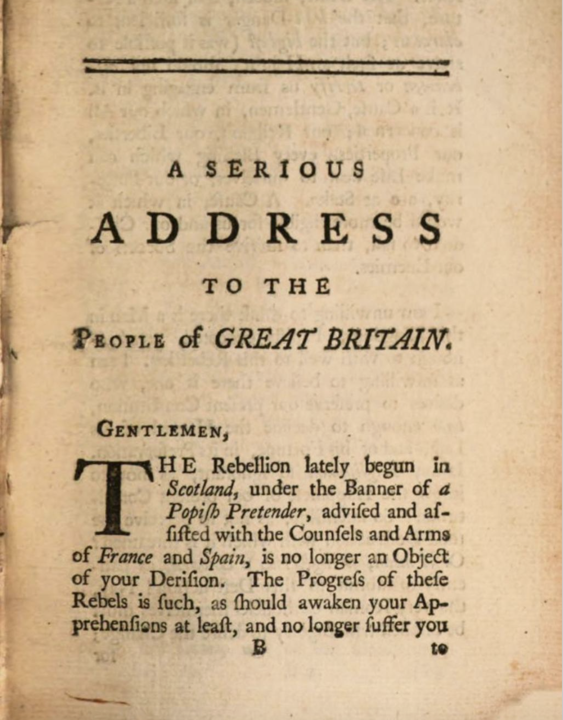 A serious address to the people of Great Britain : in which the certain consequences of the present rebellion, are fully demonstrated : necessary to be perused by every lover of his country, at this juncture...
