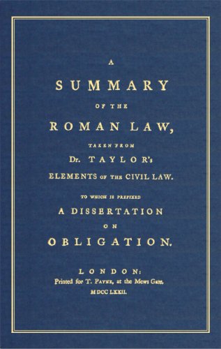 A Summary Of The Roman Law / Taken From Dr. Taylor's Elements of the Civil Law, to Which is Prefixed a Dissertation on Obligation.: Dissertation On Obligation