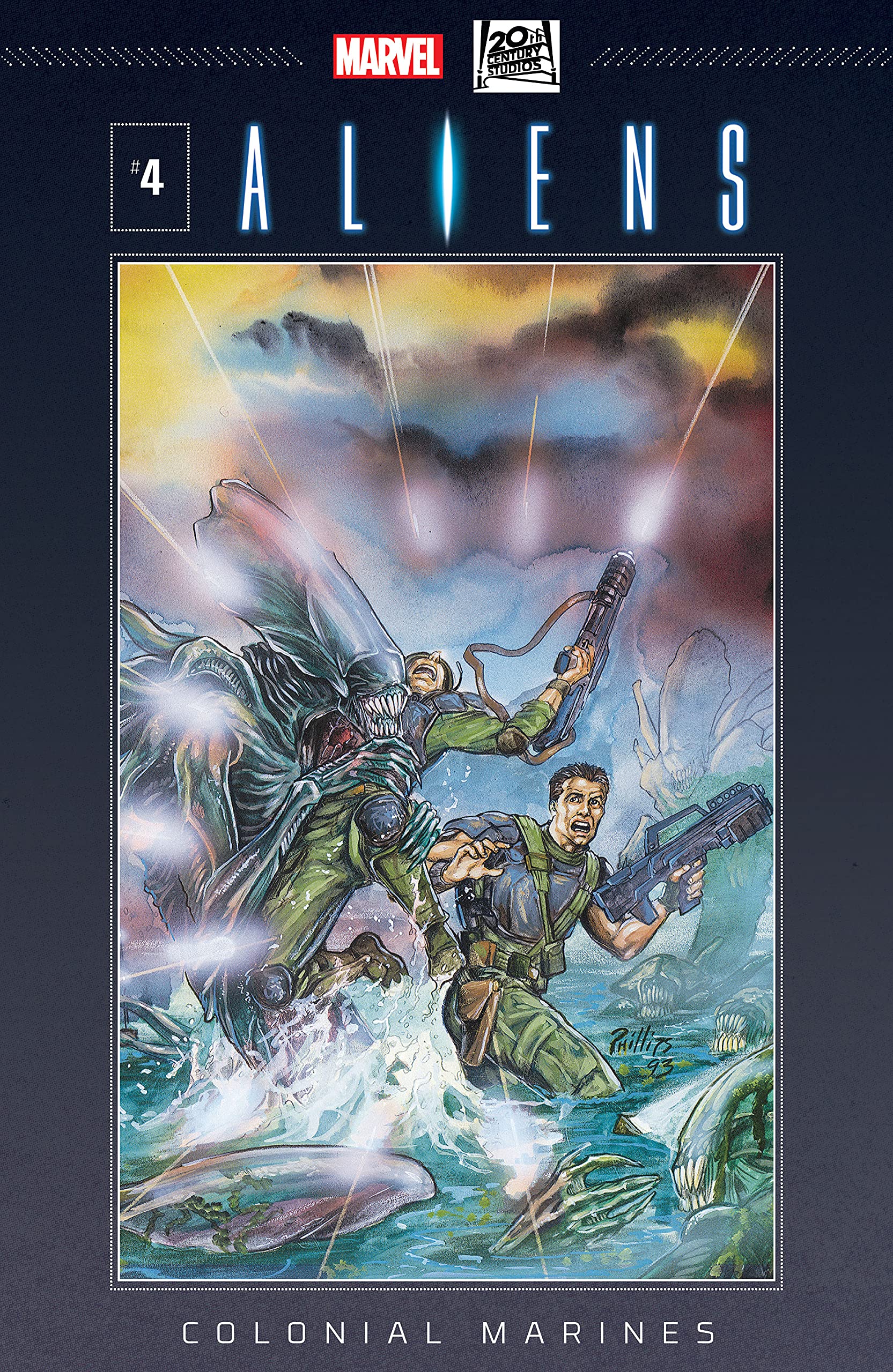 After barely escaping the rail-gun station, our not-so-happy band of Marines is looking forward to a little R&R on the backwater (and we do mean water) planet Bracken's World. Guess again! The mysterious "father" from last issue has already established a foothold on the dreary little planet, and isn't about to let Lt. Henry interfere with his schemes. Get ready for aquatic action and intrigue as our hapless heroes are betrayed from within by the only person that can save them!