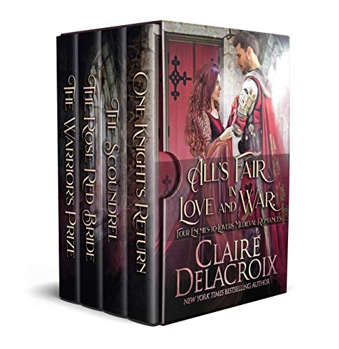 Be swept away by four thrilling medieval romances by the “Queen of Medieval Romance”, each featuring a defiant lady at odds with a persistent and powerful knight. Sparks fly in these battles of wills, but passion will win the day. In One Knight’s Return, Melissande is compelled by her overlord to marry a rough knight just home from crusade – the alternative is to surrender her family holding completely. She knows the kind of knight who will hold her heart, and Quinn de Sayerne isn’t it. Quinn, on the other hand, knows what it’s like to risk everything and is determined to make their arranged marriage into a real one—no matter what the cost to his beautiful wife’s pride. In The Scoundrel, Evangeline will do anything to retrieve the relic stolen from the chapel in her family holding, even seduce the thief himself to capture the prize. Gawain has always lived outside the law, a charming rebel protecting his own advantage, but Evangeline’s devotion to Inverfyre makes him question is choices. If he changed his ways, could this beguiling, brilliant, maddening woman come to love him? In The Rose Red Bride, Erik abducts Vivienne to avenge himself against his wicked brother. Fueled by anger, he expects little of his captive except a son—but Vivienne is precisely the woman to take Erik’s cause once she learns his story. If Vivienne can ensure that Erik’s stolen legacy is regained, will her embittered but honorable husband find room in his heart for her? In The Warrior’s Prize, Elizabeth challenges Rafael to change his ways, skeptical that the mercenary who nearly cost her brother his life is capable of redemption. But Rafael sees his comrade’s sister as an angel sent to save him, and when he realizes that she’s in peril of being claimed by the Fae king himself, Rafael will pay any price to save the only maiden bold enough to challenge him. But will his all be enough for Elizabeth? Indulge in four sweeping medieval romances to warm a winter’s night!
