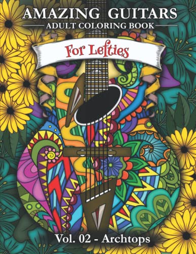 AMAZING GUITARS For Lefties Vol.02 Archtops: Adult Coloring Book for Relaxation and Stress Relief, Flowers, Mandalas and Abstract Designs