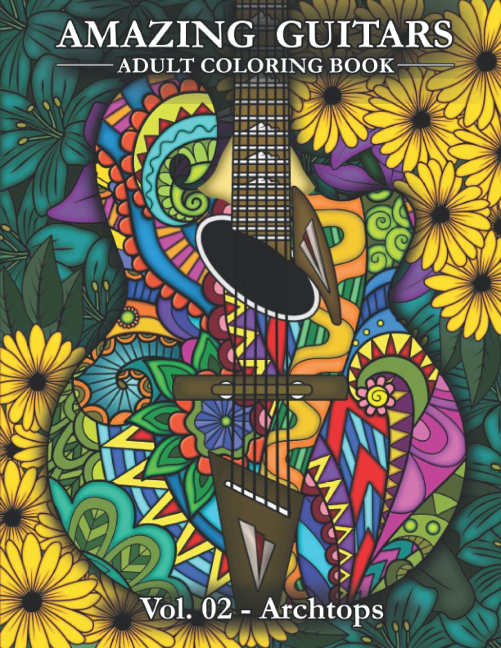 Amazing Guitars Vol.02 Archtops: Adult Coloring Book for Relaxation and Stress Relief, Flowers, Mandalas and Abstract Designs