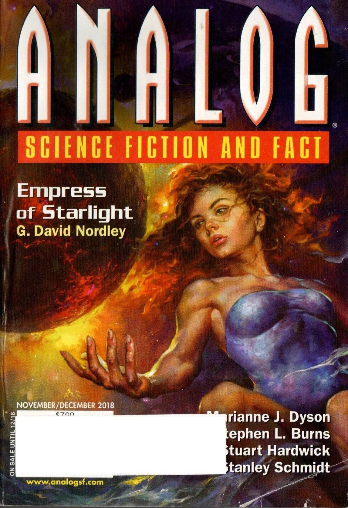 8 • Empress of Starlight • 26 pages by G. David Nordley42 • Pandora's Pantry • 14 pages by Stephen L. Burns56 • The Gleaners • 7 pages by Sarina Dorie63 • Smear Job • 3 pages by Rich Larson66 • A Measure of Love • 6 pages by C. Stuart Hardwick72 • Learning the Ropes • 11 pages by Tom Jolly84 • Hubstitute Creatures • 20 pages by Christopher L. Bennett104 • The Light Fantastic • 5 pages by J. T. Sharrah113 • The Jagged Bones of Sea-Saw Town • 3 pages by Marissa Lingen116 • Sandy • 2 pages by Bruce McAllister120 • Dad's War • 10 pages by Filip Wiltgren130 • Ashes of Exploding Suns, Monuments to Dust • 25 pages by Christopher McKitterick158 • The 7 Most Massive Historical Mistakes in the Gunmaster of the Carlords • 2 pages by Eric James Stone160 • The Ascension • 4 pages by Jerry Oltion164 • Left Turn • 5 pages by Jay Parks169 • Body Drift • 5 pages by Cynthia Ward174 • Mixipoxi Learns to Drive • 23 pages by Joyce Schmidt, Stanley Schmidt
