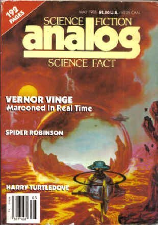 • The Panic Mentality by Stanley Schmidt• Marooned in Realtime (Part 1 of 4) by Vernor Vinge• A Calendar of Upcoming Events by Anthony R. Lewis• Fermi Paradox - The Final Solution? by Duncan Lunan• The Royal Visit by John Gribbin• Brain in a Pocket by Rob Chilson• Biolog: Duncan Lunan by Jay Kay Klein• Phreak Encounter by Roger MacBride Allen• On Gaming by Matthew J. Costello• The Iron Elephant by Harry Turtledove• Neutrinos and WIMPs by John G. Cramer• The Mick of Time by Spider Robinson• The Reference Library by Thomas A. Easton • Review: Darkhold by Jerry Earl Brown by Thomas A. Easton • Review: Killer Station by Martin Caidin by Thomas A. Easton • Review: Head of State by Richard Hoyt by Thomas A. Easton • Review: Walking on Glass by Iain Banks by Thomas A. Easton • Review: Freedom Beach by James Patrick Kelly and John Kessel by Thomas A. Easton • Review: Ancient of Days by Michael Bishop by Thomas A. Easton • Review: Angel with the Sword by C. J. Cherryh by Thomas A. Easton • Review: Wanderer by Dennis Schmidt by Thomas A. Easton • Review: Search the Sky by C. M. Kornbluth and Frederik Pohl by Thomas A. Easton • Review: After the Flames by Elizabeth Mitchell by Thomas A. Easton • Review: Dragonfield and Other Stories by Jane Yolen by Thomas A. Easton • Review: Trinity and Other Stories by Nancy Kress by Thomas A. Easton• Review: The Astral Mirror by Ben Bova by Thomas A. Easton