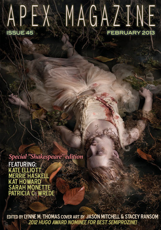 Apex Magazine is a monthly science fiction, fantasy, and horror magazine featuring original, mind-bending short fiction from many of the top pros of the field. New issues are released the first Tuesday of every month.A 2012 Hugo Award nominee for Best Semiprozine!Table of Contents:FICTION“Mad Hamlet’s Mother” by Patricia C. Wrede“Zebulon Vance Sings the Alphabet Songs of Love” by Merrie Haskell“The Face of Heaven So Fine” by Kat Howard“My Voice is in My Sword” by Kate ElliottNONFICTION“Blood on Vellum: Notes from the Editor-in-Chief” by Lynne M. Thomas“Welcome to the Reformation, Bitches” by Sarah Monette“An Interview with Kate Elliott” by Maggie SlaterCover art by Jason Mitchell and Stacey Ransom.