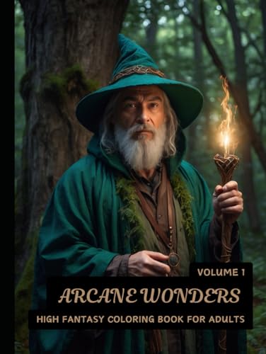 Arcane Wonders: High Fantasy Adult Coloring Book: 50+ Magical Greyscale Images of Wizards, Elves, Dragons, Castles, Enchanted Forests, and Knights for Adult Serenity