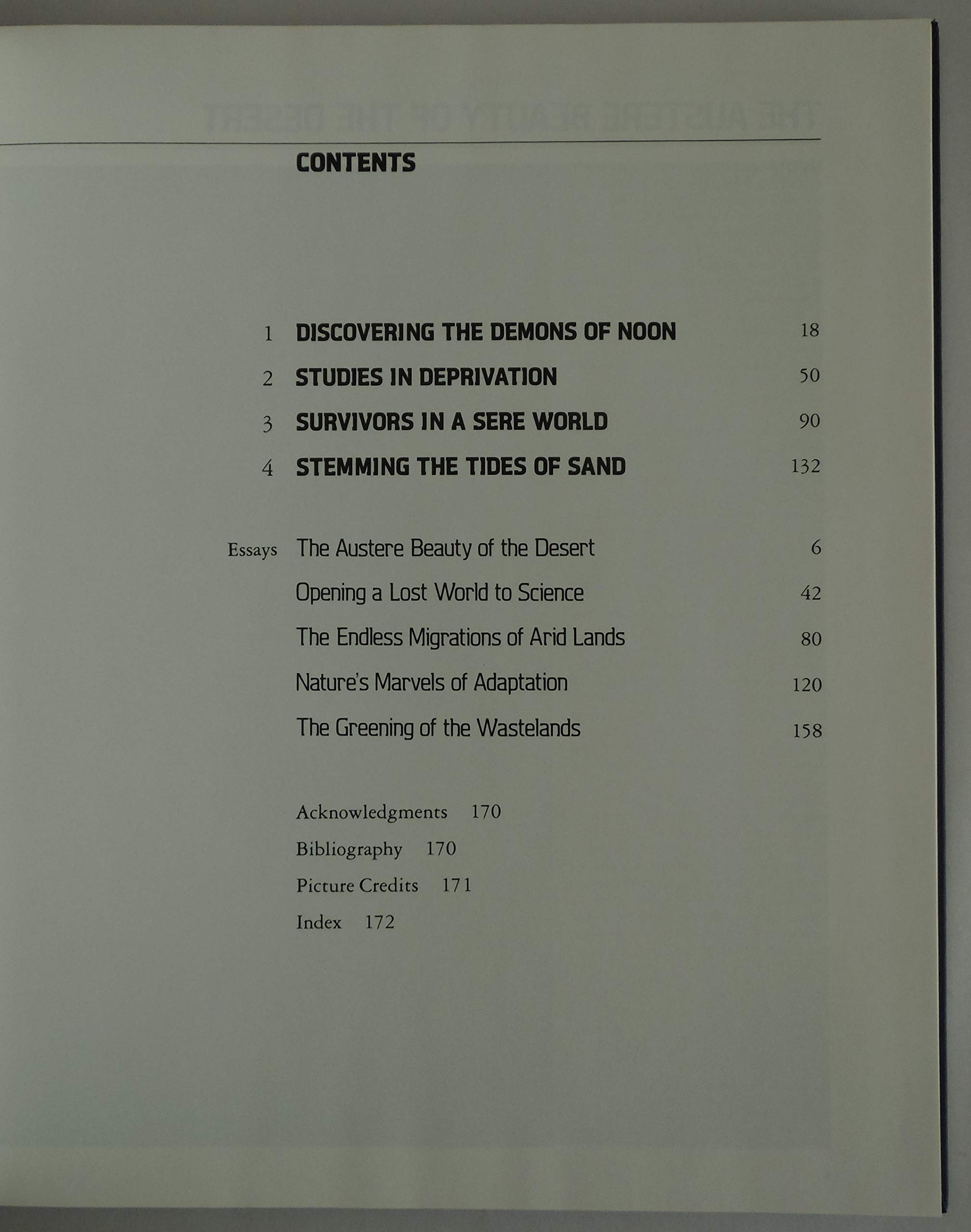 Describes the characteristics of a desert, explains how plants and animals have adapted to the arid conditions, tells the stories of desert explorers, and suggests ways to stop the growth of deserts