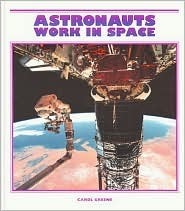 Photographs and simple text describe some of the jobs that astronauts do aboard a space shuttle and what they do to prepare on the ground.