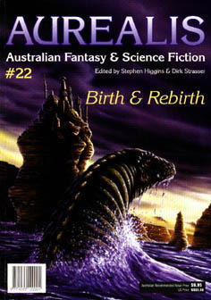 Contributors in this issue include Sacha Davis, Naomi Hatchman, Stephen Higgins, Van Ikin, Anthony Morris, Colin J. Ponting, Peter Richter, John T. Stolarczyk, and Kaaron Warren.Aurealis #22 Birth & RebirthContents Aurealis #22 • interior artwork by Shaun Tan4 • Editorial (Aurealis #22) • [Editorial - Aurealis] • essay by Stephen Higgins6 • The Society of Australian Speculative Fiction Writers: A Second Proposal (Aurealis #22) • essay by Stephen Higgins and Dirk Strasser9 • Letters (Aurealis #22) • [Letters (Aurealis)] • essay by The Readers11 • The Waiting Tree • short story by Stephen Higgins11 • The Waiting Tree • interior artwork by Robert Paes27 • Mating Habits • short story by Sacha Davis27 • Mating Habits • interior artwork by Shaun Tan35 • The Glass Woman • short story by Kaaron Warren35 • The Glass Woman • interior artwork by Trudi Canavan43 • Worm Song • short story by Naomi Hatchman43 • Worm Song • interior artwork by Marianne Plumridge53 • Love Sick • short story by Anthony Morris53 • Love Sick • interior artwork by Rob Kiely61 • Dance of the Murran-Ji • short story by Colin J. Ponting61 • Dance of the Murran-Ji • interior artwork by Donna Johansen71 • End Game • short story by John T. Stolarczyk71 • End Game • interior artwork by Shaun Tan83 • The Ikin Interviews: Stephen Dedman • interview of Stephen Dedman • interview by Van Ikin93 • Book Reviews: Overview (Aurealis #22) • essay by Bill Congreve95 • Review: Exile's Return by Kate Jacoby • review by Bill Congreve95 • Review: A Shadow on the Glass by Ian Irvine • review by Bill Congreve97 • Review: The Year's Best Australian SF & Fantasy, Volume Two by Jonathan Strahan and Jeremy G. Byrne • review by Bill Congreve98 • Review: The Man Who Melted by Jack Dann • review by Bill Congreve98 • Review: The Resurrected Man by Sean Williams • review by Bill Congreve99 • Review: The Undying by Mudrooroo • review by Bill Congreve100 • Review: The Viewer by Gary Crew and Shaun Tan • review by Bill Congreve100 • Review: Cold Iron by Sophie Masson • review by Bill Congreve103 • The Australian SF Writers' News (Aurealis #22) • [Australian SF Writers' News] • essay by uncredited112 • And Having Writ... • essay by Stephen Dedman115 • The Truth Behind... UFOs • essay by Peter Richter120 • Contributors (Aurealis #22) • [Aurealis - miscellaneous] • essay by uncredited