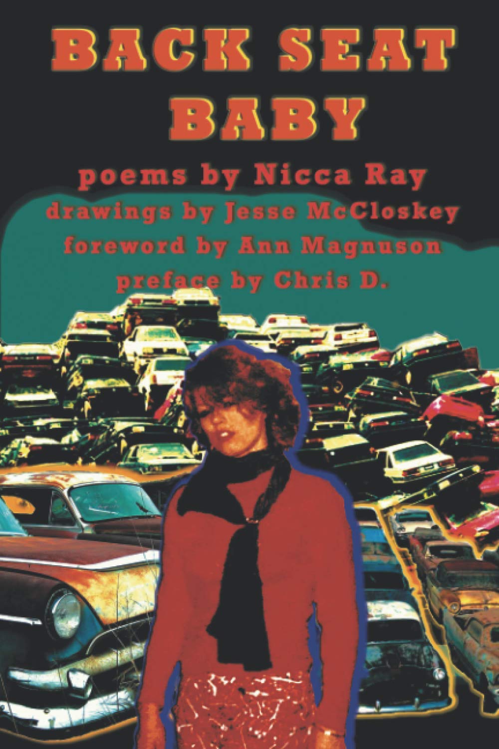 “Nicca Ray’s poems turn nightmares into idylls of 1970s nights, she turns fear into intimacy and Hollywood moonlight into the sun’s relentless exposure, heat. Her poetry is precise, beautiful, delicate as a blown-glass angel, concrete and painful...she delves bravely into the depths of her own psyche, of her body, she makes me see Los Angeles as a revelatory realm of glittering runaway scars and familial talons, the warmth of the mother, the progenitor, in her magical words absence is music, rich with unceasing, kinetic passion. A magnificent collection.” – Tammy Faye (cabaret performer extraordinaire - Tammy Faye Starlite persona, repertoire renditions of Nico, Marianne Faithfull, et.al.); "You don’t have to grow up here to find Ray’s poetic odyssey so familiar. Hollywood is part of our DNA, inextricably bound up with our own personal histories and traumas – parental neglect, divorce, alcoholism, addiction. Ray’s Jungian road map shows us life in a city that is not so much Dream Factory as fast food drive-thru...Ray finds gold in the collective swamplands of our souls. She nails that “feeling weird” feeling that had a lot of us gravitating towards like-minded misfits, all desperate to find solace within the Tribe of Cool. [Her father] Nicholas Ray’s rebel was famously without a cause. Nicca Ray’s rebel has to wake up from the recurring nightmare and change the narrative; to write her way out of the mausoleum; to walk, resurrected, with ease on the streets below as well as the clouds above." – Ann Magnuson; “Back Seat Baby is a brutally beautiful account of a child who knew the smell of sex and the taste of whiskey, yet still exploded in colors. The shell of her chocolate Easter bunny, forgotten in the butter drawer, her self-described ‘blankness in the darkest space,’ her ‘thick purple tights melting bone’ are some of the saddest lines I’ve ever read...” – Puma Perl (writer/poet, "Birthdays Before and After"); "Some people write to simply, unpretentiously, tell stories, and that is fine. Perhaps they achieve...grace, perhaps they do not. You can't push it like a brand new product for consumption. Intentionally trying to be a conduit for that grace, to force it and portray it as an aspirational thing – even a commodity – is the worst thing a writer can do. Because it kills its guileless spontaneity and purity of vision. Nicca does not ever have to worry about that. Her survival from childhood, her acceptance of unspeakable pain and her resulting grace has enabled her to achieve a transcendence of the all-too-ordinary monstrosity of everyday life. She shows it in her poetry. " – Chris D. (author of "No Evil Star," "Shallow Water," "Mother's Worry", singer/songwriter of the bands, The Flesh Eaters and Divine Horsemen); “Back Seat Baby is a windrush of boulevards that ought to be glittering, but aren’t, of birthdays ruined because you realize you have no other mother, no other home. And oh, so much more. A beautifully poignant heartbeat of how things were instead of how you needed them to be. And, of course, the poems are dripping with all that California. From start to finish, gilded with gorgeous imagery and truth, this collection will stay with you for a very long time.” – Francine Witte, (author of Cafe Crazy and The Theory of Flesh) “Nicca Ray's poetry shines through windows fly specked with glory in Topanga Canyon with fresh icons of L.A. from the litter of star sidewalks. Rimbaud with blue hair. Clean sheets, sunny beach, ruffles with ridges, big wave Malibu. 'If art is the devil's work' she has no fear of burning in hell. The High Noon of poetry.” – Charles Plymell (author of "Apocalypse Rose" and "Last of the Moccasins")