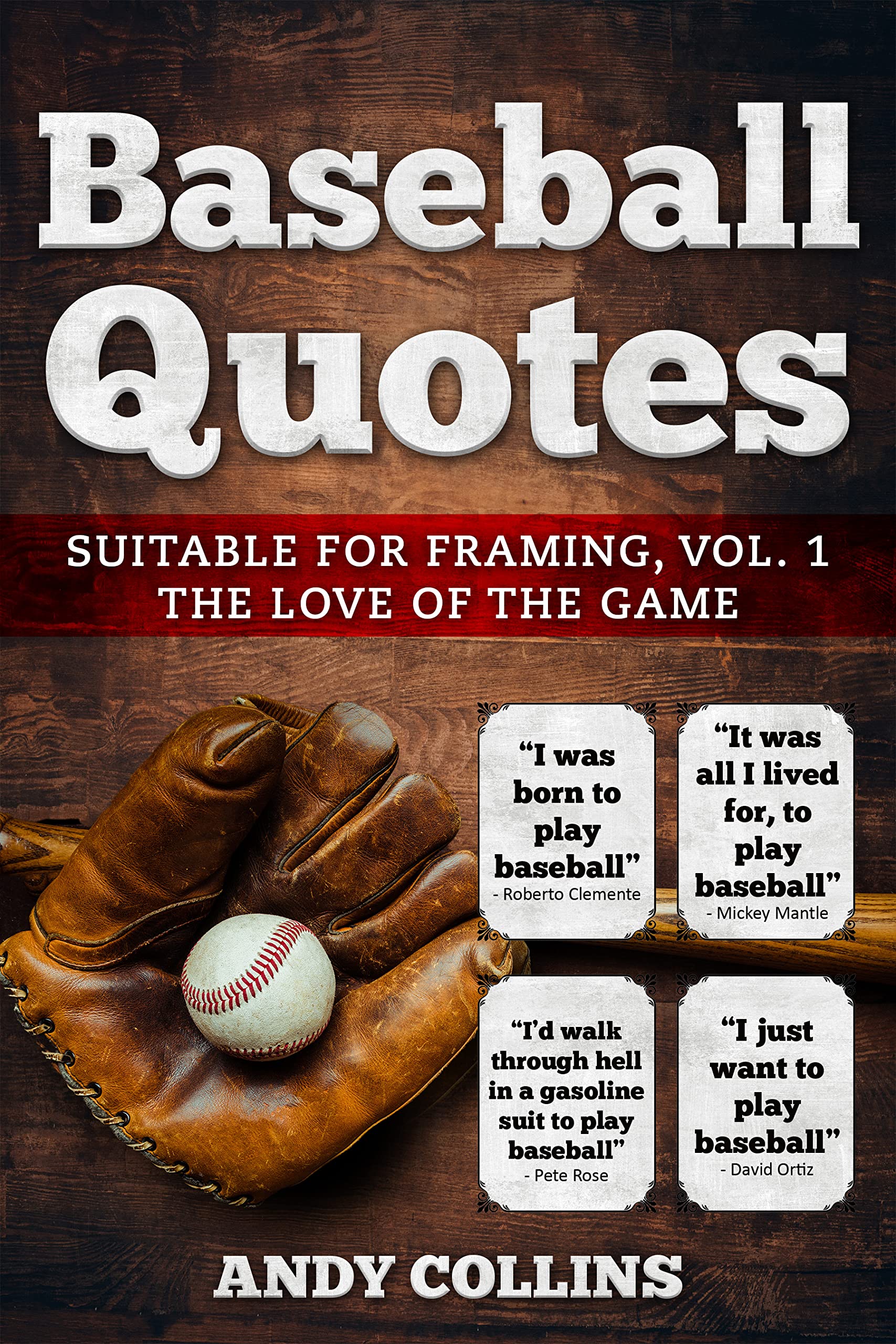 This book of Baseball Quotes was written from my love of the game of baseball and the many fantastic quotes that the game evokes. I also thought you’d love them as much as I do. And if you found one that was especially inspiring, you might like to turn it into a poster or a plaque.So with that in mind, if you like the quote, print the page and frame it.There are over 50 quotes in this volume and were taken from those who talked about the game itself and their enjoyment of the game. Volume 2 to follow will have quotes that are inspirational, motivational, and describe a strong work ethic, while volume 3 will have funny quotes about the game of baseball from those baseball players, managers, coaches, announcers, and fans who saw the game in a humorous way.The author, Andy Collins, has had a lifelong love of baseball and softball and still plays and coaches to this day.