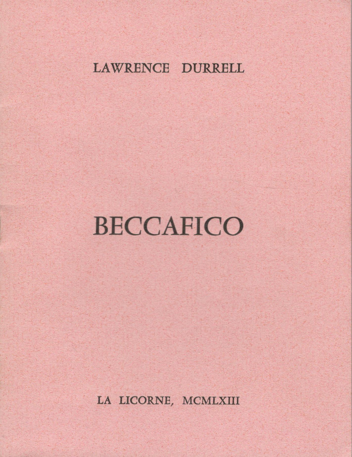 One hundred and fifty copies of BECCAFICO have been printed by l'Imprimerie Nouvelle Montpellier, in the month of Janvier 1963 and signed by the author.
