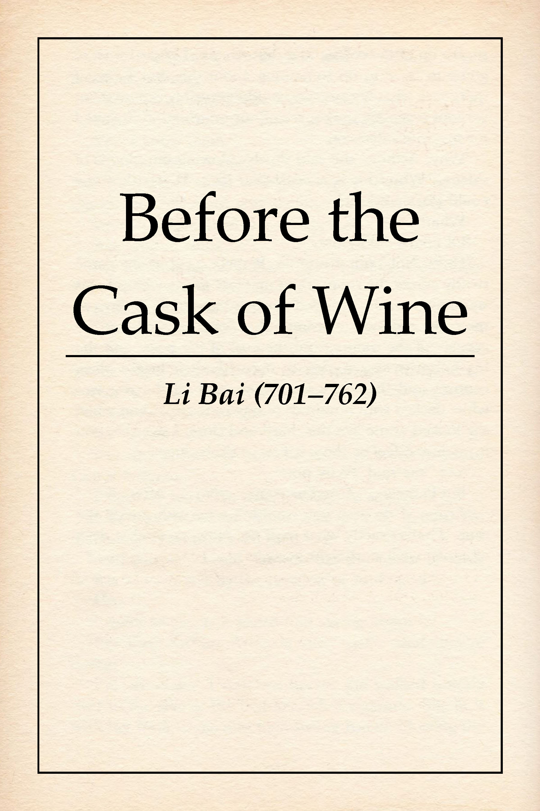 "Rise and dance in the westering sun,While the urge of youthful ears is yet unsubdued!"" 'Before the Cask of Wine' is a highly regarded lyrical poem by the Chinese poet Li Bai that speaks of the fugacity of life and beckons the reader to enjoy one's time of youth to the fullest. His love for liquor and wine was legendary, as is so eloquently suggested by this work. Li Bai (701–762), also known as Li Bo, was a Chinese poet from the 8th century. He was part of the group of Chinese scholars called the "Eight Immortals of the Wine Cup" in a poem by fellow poet Du Fu. Li Po is often regarded, alongside Du Fu, as one of the two greatest poets in China's literary history. Approximately 1,100 of his poems remain today, many of which are collected in 'The Selected Poems of Li Po'. He is said, famously but untruly, to have drowned in the Yangtze River, having fallen from his boat while drunkenly trying to embrace the reflection of the moon.