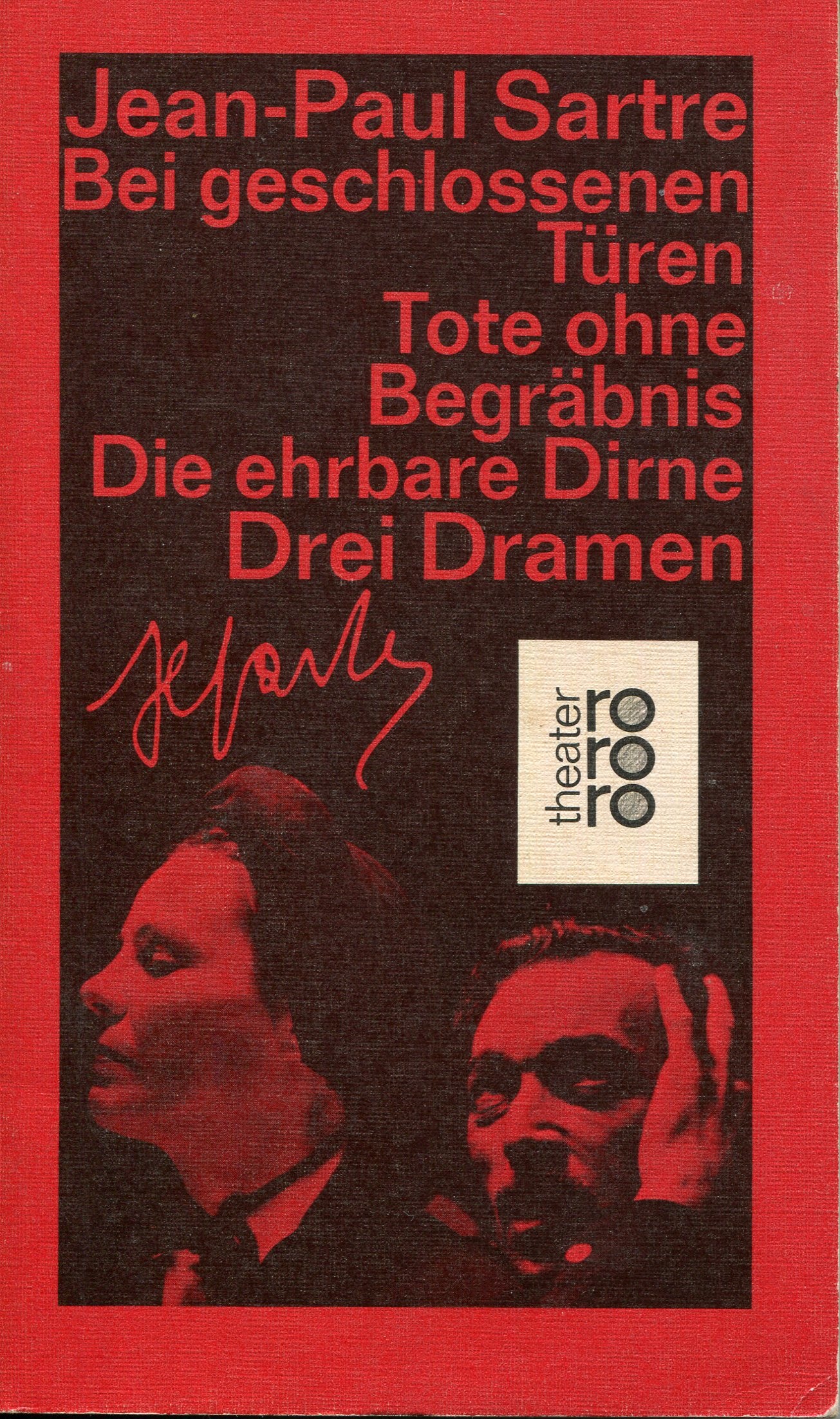 Drei der wichtigsten Stücke des französischen Philosophen und Schriftstellers. «Bei geschlossenen Türen» schildert die Hölle, die ‹die anderen› sind. In dem Empire-Salon eines heruntergekommenen Hotels foltern sich drei Menschen in gegenseitiger Selbstentblößung. «Tote ohne Begräbnis» ist ein Zeugnis politisch engagierten Denkens. Resistance-Kämpfer behaupten Tapferkeit und Würde gegen Folter ud Tod. In die «Die ehrbare Dirne», einem der aufsehenerregensten Stücke der Gegenwart, plädiert Sartre für soziale Gerechtigkeit. Durch Erpressung einer Dirne soll in einer Stadt des amerikanischen Südens die Mordtat eines Senatoren-Neffen einem Farbigen unterstellt werden.