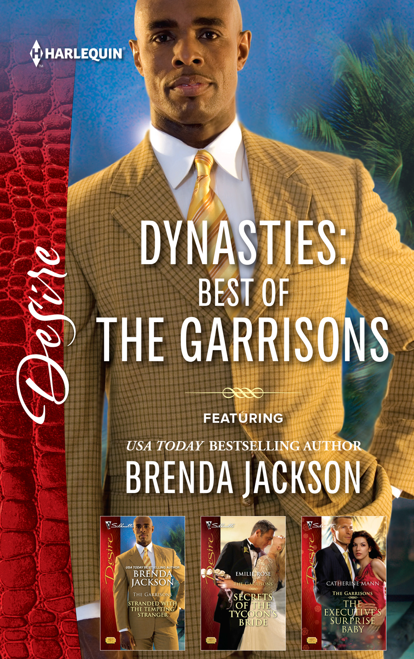 Harlequin Desire brings you three sexy, emotional stories from the reader favourite series The Garrisons, by New York Times and USA TODAY bestselling author Brenda Jackson and USA TODAY bestselling authors Emilie Rose and Catherine Mann. Now available in one volume!STRANDED WITH THE TEMPTING STRANGER by Brenda JacksonCutthroat litigator Brandon Washington isn't used to being ignored. So when Cassie Garrison–the newly discovered half sister of his firm's biggest client–refuses his repeated attempts at contact, he sets out to teach the elusive heiress a lesson. Traveling under an assumed identity to her Bahamian home, he's determined to seduce all of Cassie's secrets out of her. But will Brandon find his professional mission at war with his very personal interests?SECRETS OF THE TYCOON'S BRIDE by Emilie RoseTo keep up appearances, Adam Garrison needs a perfect, respectable wife–fast! And Lauryn Lowes is the ideal candidate. A natural beauty with brains, Lauryn already works for him. But when Lauryn turns his “proposal” down flat, the bachelor billionaire suddenly becomes more determined than ever to capture her as his bride…THE EXECUTIVE'S SURPRISE BABY by Catherine MannTelling her high–society family she is about to be an unwed mother is tough enough for Brooke Garrison. Because the baby's father is also their archenemy, Brooke plans to keep the paternity secret… But when millionaire hotel mogul Jordan Jefferies learns the truth, nothing will stop him from claiming his child…and making Brooke his wife.