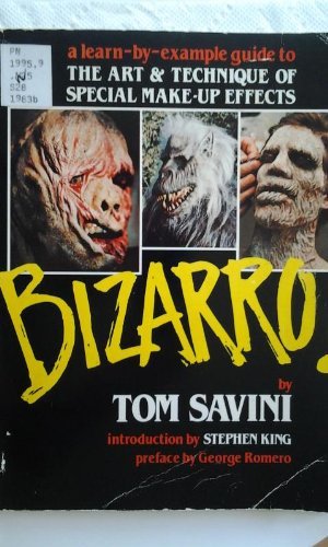 Bizarro includes 400 photos-100 in full color-of Savini's work on screen and behind the scenes. Many of these photographs have never been seen before. All the effects he has created in each of his films are explored and explained. Also included are step-by-step make-up demonstrations (shot especially for the book) to offer budding make-up artists and film fans a firsthand look at how cinematic illusions are created.For the first time, Tom Savini has put his knowledge of technique and his experience in the field of special make-up effects down on paper. Bizarro is both a chronicle of his work and a learning guide for anyone who wishes to pursue special make-up effects as a career.Tom Savini not only makes dreams real-he brings nightmares to life. In Bizarro he shows step-by-step how he created some of the most amazing special make-up effects in horror films today. Savini's films include Creepshow, Friday the 13th, Eyes of a Stranger, The Burning, Maniac, and The Prowler. His effects range from walking corpses to exploding zombies. He has also created some wonderful monsters, including Creepshow's Fluffy and Friday the 13th's spine-tingling Jason.TOM SAVINI is an actor and stuntman, as well as being one of the top make-up artists in film.