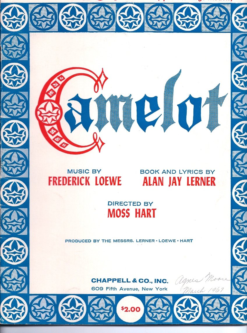 Camelot, All Organ Selection. Lyrics by Alan Jay Lerner, Music by Frederick Loewe, 22 Pages, Publisher Chappell & Co. Excellent condition, Organ 6?? Aidan13bag13(1)