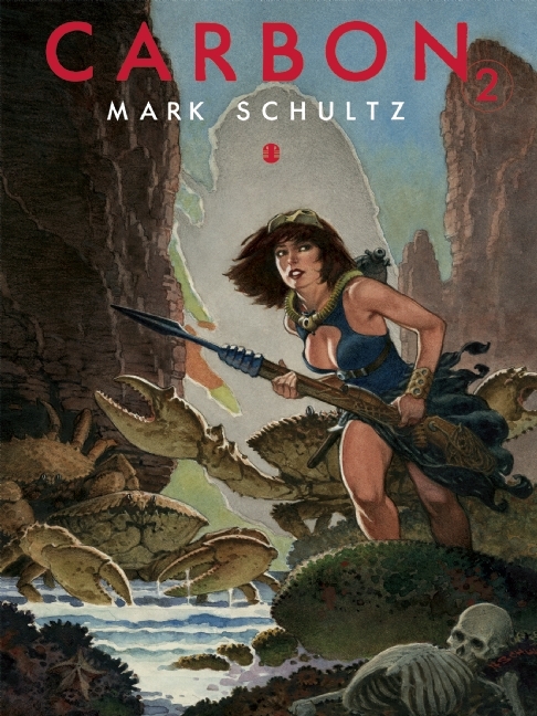 The first thing you can count on in any collection from Mark Schultz is a kind of subject matter, featuring outré situations involving daring men and women, and, often, fearsome beasts. The second thing you can count on is his allegiance to certain graphic medium—generally brush and ink, and graphite and charcoal, but sometimes watercolor too. The third thing you can count on is that, although the subject matter and media stay consistent, his design, draftsmanship and control of his presentation are always evolving and growing, Here, in Carbon 2, his work has become noticeably bolder—more viscerally engaging.Carbon 2 follows its predecessor by three years, and in those years Mark’s work has become something more solid, and at times almost sculptural, as he continues to refine his attempts to put to paper the visions he sees in his head. Featuring conceptual studies as well as finishes, Carbon 2 gives us a look into that process.Of course there are plenty of lovely warrior women, including more in the Pulpette series, as well as portraits of his Xenozoic characters, Hannah Dundee and Jack Tenrec, negotiating dire straits. There is also sword and sorcery, ancient mythic tableaus, and otherworldly science fiction to satisfy the most diverse tastes. And there are preliminaries and rejected pieces from Storms at Sea, and, (spoiler alert) design work and character studies from Mark’s new in-progress Xenozoic graphic novel. Qua hoon!The large-format Carbon 2 will feature over 50 of Mark’s newest works across its pages.