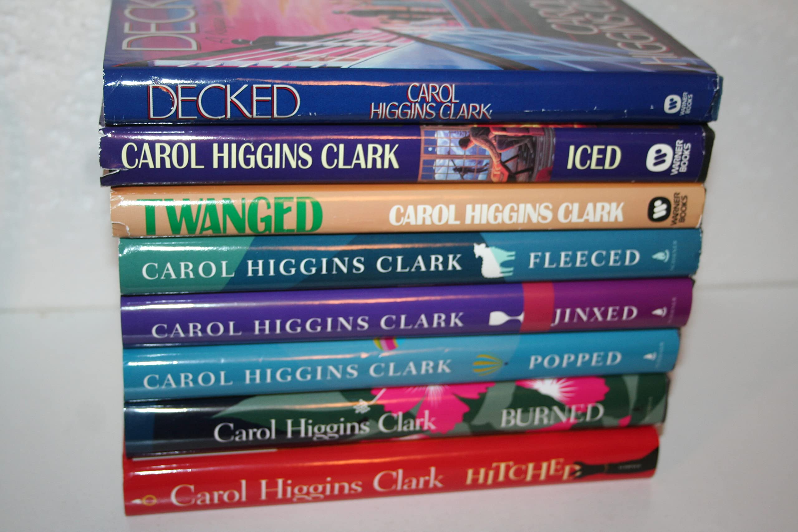 Series Titles Regan Reilly 1. Decked (1992) 3. Iced (1995) 4. Twanged (1998) 5. Fleeced (2001) 6. Jinxed (2002) 7. Popped (2003) 8. Burned (2005) 9. Hitched (2006)