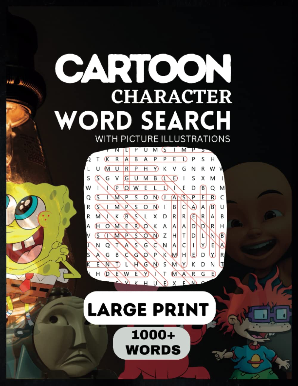 This Cartoon Characters Puzzle book has 1000+ words, Large printingComprise of 78 pages and cartoon character illustrations on each page.The answers to the problem may be found at the back of the book.This puzzle book contains. Over a thousand Over a thousand words.10 animated cartoon movie/series and character namesLarge Prints with black and white pages8.5 x 11 size