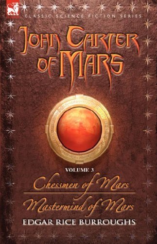 John Carter of Mars - Volume 3 - Chessmen of Mars & Mastermind of Mars. A freak storm on Mars throws Tara, Princess of Helium and beautiful daughter of John Carter, wildly off course after she embarks on an imprudent flight. Gahan, Jed of Gathol, her new admirer, takes off in pursuit and they soon find themselves in a land of bodies without heads and heads without bodies. In Chessmen of Mars, Edgar Rice Burroughs once again whirls the reader into an entertaining maelstrom of breakneck action. The second novel in this book, Mastermind of Mars, introduces us to Ulysses Paxton. Whisked from the battlefields of the Great War to Mars, Ulysses is pitched into a nightmare world of brain and body transference underpinned by the high adventure we expect from the John Carter of Mars books. Burroughs fans will not be disappointed by this third volume in Leonaur's ongoing series.