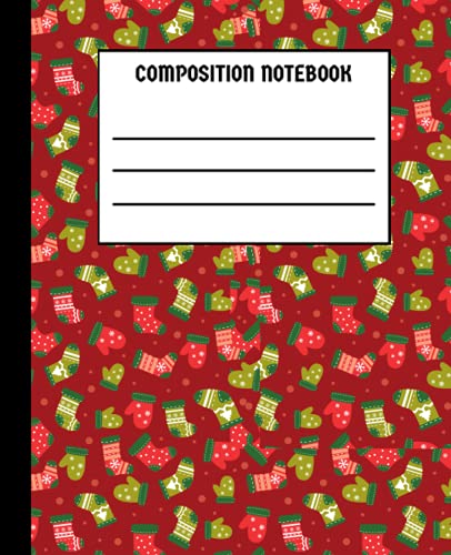 Christmas Socks and Gloves Red Composition Notebook by Marc Allen: Wide-Ruled, 7.5 x 9.25, 110 Pages, For kids, teens, and adults