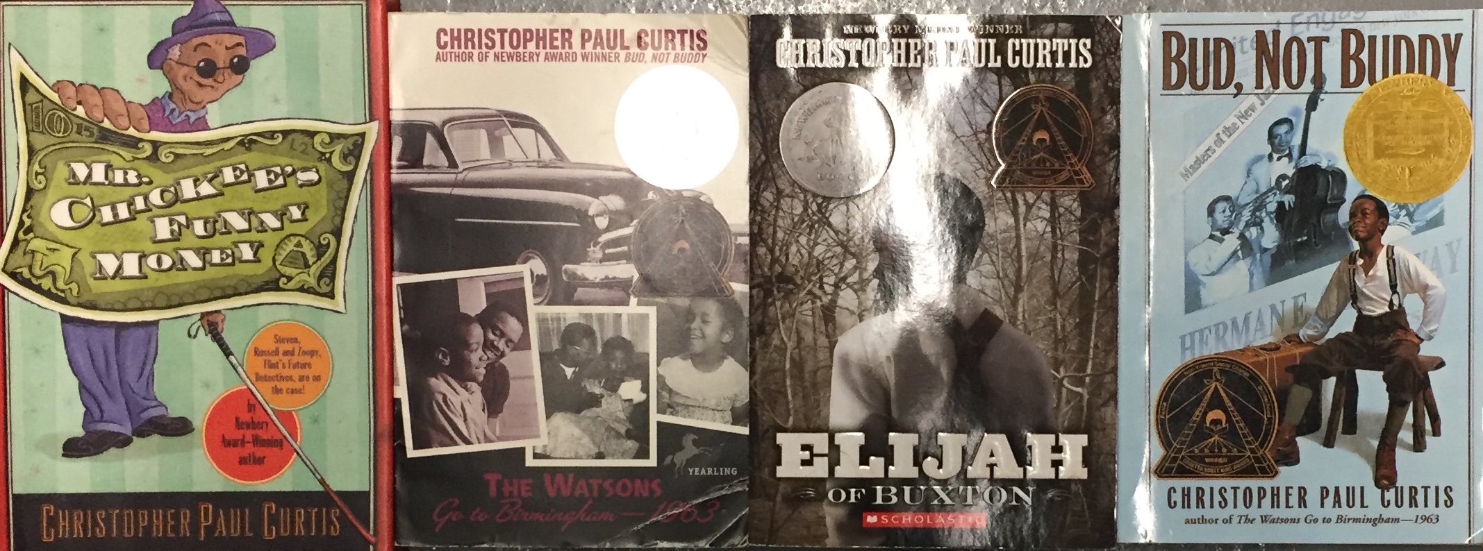 Christopher Paul Curtis Historical Fiction Collection 4 Book Set includes- Bud Not Buddy, The Watsons Go to Birmingham, Mr. Chickee's Funny Money, and Elijah of Buxton
