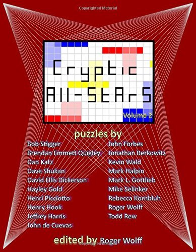 If you thought Volume 1 was mind-blowingly awesome, then you'll think Volume 2 is mind-blowingly awesome as well. 45 more variety cryptic crosswords from Bob Stigger, Brendan Emmett Quigley, Dan Katz, Dave Shukan, David Ellis Dickerson, Hayley Gold, Henri Picciotto, Henry Hook, Jeffrey Harris, John de Cuevas, John Forbes, Jonathan Berkowitz, Kevin Wald, Mark Halpin, Mark L. Gottlieb, Mike Selinker, Rebecca Kornbluh, Roger Wolff, and Todd Rew. What more could you possibly ask for? Besides a third volume....