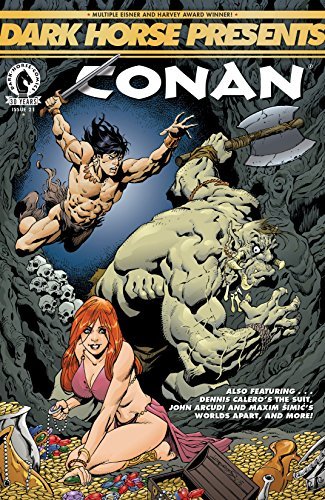 Eisner, Harvey, and Stumptown Award winner! Writer and artist Dennis Calero returns to DHP with the next thrilling installment of The Suit! Also new for this issue, Aaron Lopresti gives his take on the Cimmerian sword swinger in The Swamp King! This issue also features continuations of Paul Levitz and Tim Hamiltons Brooklyn Blood andRich Woodall and Craig Rousseaus Alien Jungle Girl. Finally, tune in for the conclusions of two John Arcudi and Maxim Šimi’s Worlds Apart, and Adam P. Knave, D.J. Kirkbride, and Robert Wilson IV’s Laser Joan and the Rayguns!