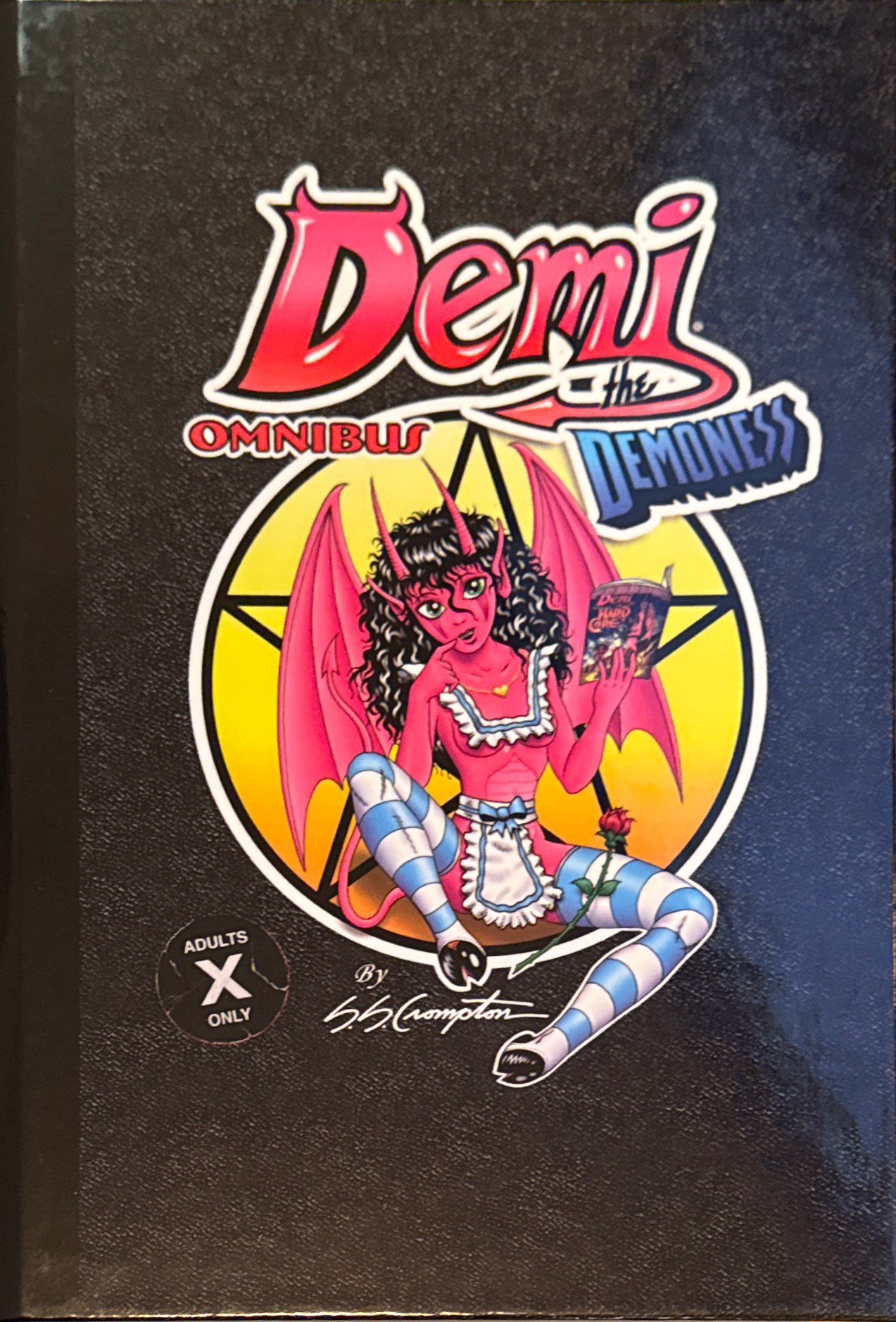 Demi The Demoness is one of the Most Notorious, mid 90's Underground Comics titles of all time. With a heavy influence of the gritty, dark, underground comics of the 80s. But with Crompton's Demi, you get all the cuteness, charm and appeal of Sex Positive titles such as Lary Welz Cherry 'Poptart', and even the lesbian erotic Sapphic Pulp charms of Colleen Coover's Small Favors". Demi willingly gets down with sentient creatures of mythic legend, from banished angels, to horny demons, and even some Egyptian themed Gods of Old. Demi even encounters hermaphrodite beings, which makes it an early example of Intersex Positive illustrated lit, with kinky elements thrown in.