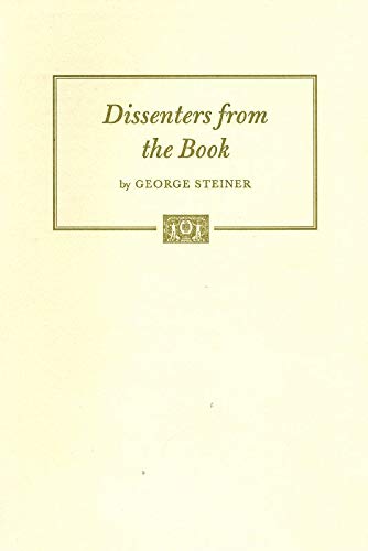 Steiner, George. Dissenters from the Book. First Edition. Boston, Trustees of the Public Library of the City of Boston, 2001. 14 x 21.5 cm. VII; 24 Pages. Original softcover. Excellent condition with minor external signs of wear. No text markings - very clean copy. [Delivered on the Occasion of the Twelfth Annual Bromsen Lecture. May 5, 2001.]