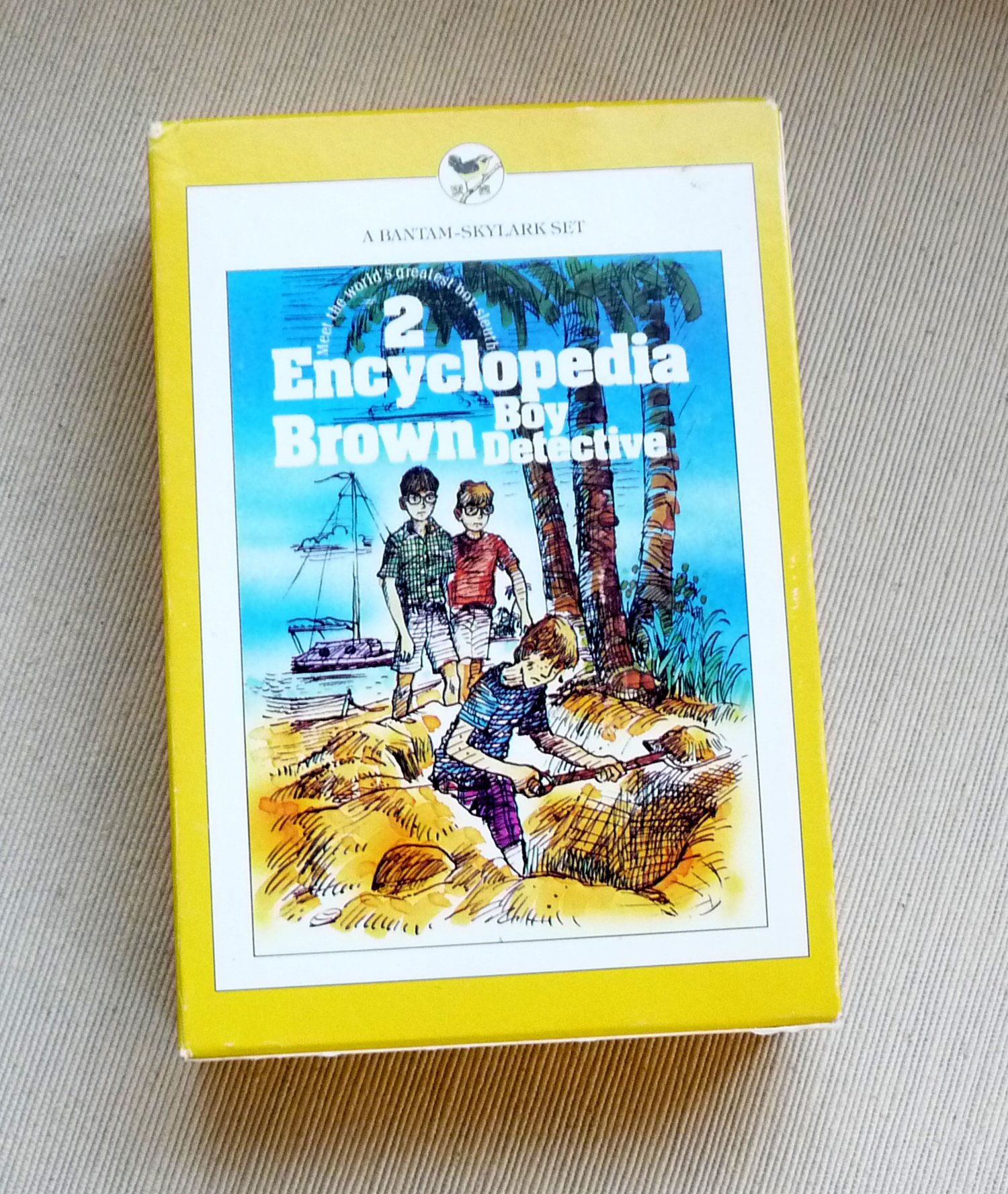 Very good condition - 5 softcovers in a slipcase, Encyclopedia Brown Saves the Day, Encyclopedia Brown Shows the Way, Encyclopedia Brown Tracks Them Down, Encyclopedia Brown's Second Book of Puzzles and Games and Encyclopedia Brown and the case of the Midnight Visitor.
