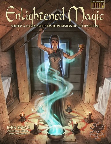 ENLIGHTENED MAGIC details two magic systems for Basic RolePlaying Enlightened Sorcery and Enlightened Alchemy. Fully compatible with Basic RolePlaying , these systems are a departure from the magic typically presented in role-playing games, which was inspired by magic as depicted in fantasy novels, films, and comic books. Enlightened Sorcery reflects traditions found in older myths and legends, and in the beliefs of generations of scholars, mystics, and eccentrics who study the occult. Enlightened Alchemy describes and models a type of magic that resembles that described and practiced in the Western occult tradition and portrayed in various myths and legends from Europe and the Middle East. Enlightened magicians perform carefully-planned rituals to cause heart attacks in distant enemies, to cloud the information discovered by those who seek to find the magician, or to affect the world in subtle and marvelous ways. This book provides all rules necessary to add Enlightened Sorcery and Enlightened Alchemy to Basic RolePlaying , and suggests settings in which this magic could be useful and exciting. Chapter a discussion of enlightened magic, information about increasing the power of these magic systems and how best to use these systems in play. Chapter rules for enlightened sorcery, a large grimoire of sorcery spells and examples of sorcery being used in play. Chapter rules for enlightened alchemy, a list of alchemical procedures, and examples of alchemy used in play.