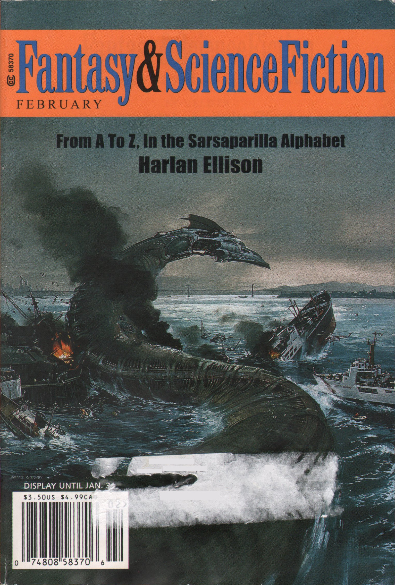 Volume 100, Number 2, Whole Number 592Contents:Edward L. Ferman - EditorialHarlan Ellison - From A to Z In The Sarsaparilla AlphabetCharles de Lint - Books to Look ForElizabeth Hand - BooksMichael Thomas - Queen of ThievesDanny Shanahan - CartoonHarvey Jacobs - Fish StoryGarth Nix - Under The LakeM. Shayne Bell - Red Flowers and IvyDanny Shanahan - CartoonPaul De Filippo - Plumage From PegasusBill Long - CartoonM. Rickert - MoorinaFrank Cotham - CartoonAlbert E. Cowdrey - The King of New OrleansFrederic S. Durbin - The Place of RootsJoseph Farris - CartoonBen Bova - Science: Sex in SpaceCarol Emshwiller - Foster MotherAmy Sterling Casil - To Kiss The StarDon Webb - CuriositiesCover by James Gurney for "From A to Z in the Sarsaparilla Alphabet"