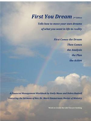 First You Dream is a unique learning opportunity combining Christian teachings with basic financial management. The steps are outlined dreaming, analysis,planning and action. The workbook is appropriate for use by individuals, trained clergy, lay leaders and group leaders. It features the sermons of Rev Dr. Marti Zimmerman which were created as part of her studies at Iliff School of Theology. Additionally, the workbook serves as a personal guide for the user in learning basic financial management concepts and in doing exercises concerning values, goals, and performing an analysis of personal finances.