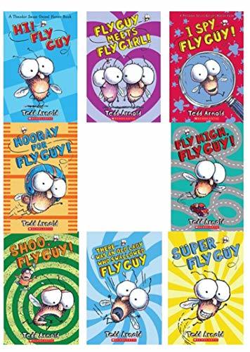 Fly Guy 8 book set Super Fly Guy; There Was An Old Lady Who Swallowed Fly Guy; Hooray For Fly Guy!; I Spy Fly Guy!; Shoo, Fly Guy!; Hi! Fly Guy; Fly High, Fly Guy!; Fly Guy Meets Fly Girl!