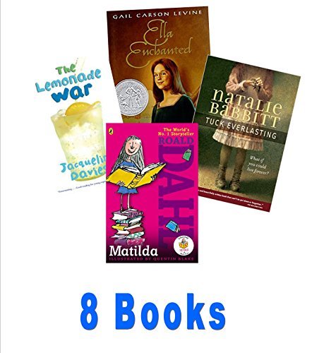 8 Books: The Borrowers; the Tiger Rising; Tuck Everlasting; Matilda; Ella Enchanted; the Lemonade War; Just Juice; the Music of Dolphins