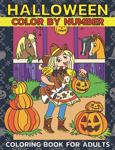 Halloween Color By Number Coloring For Adults: An Adult Coloring Book With Dark Cemeteries, Cursed Black Cats, Scary Pumpkins, ... Night
