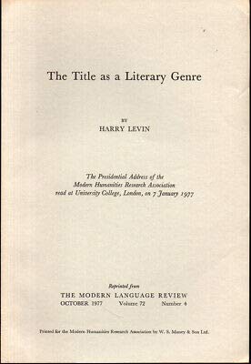 Harry Levin 1st edit/1 print The Title As Literary Genre 1977 [Paperback] Levin, Harry [Paperback] Levin, Harry