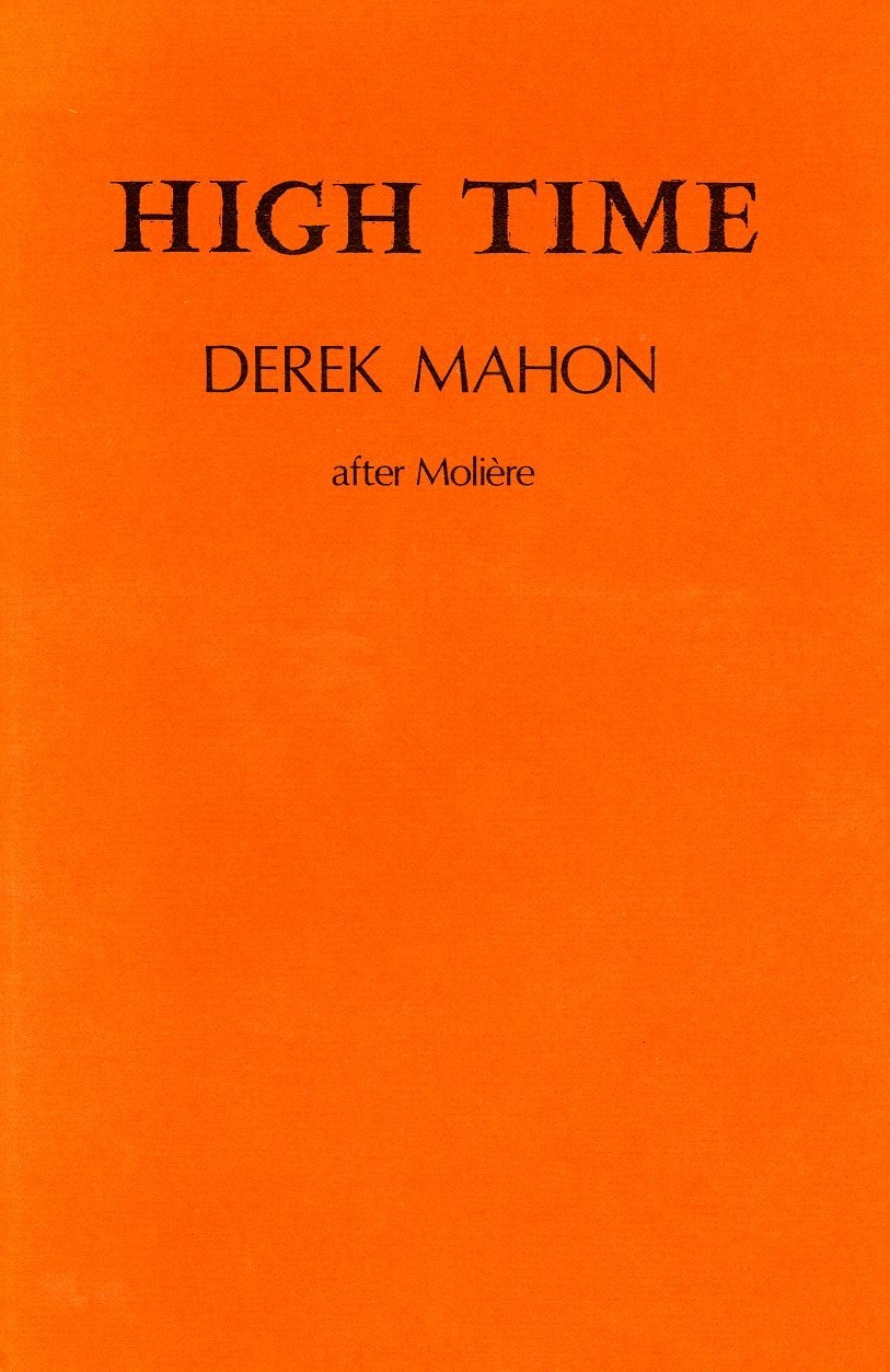 High Time is a free translation of Molière's L'École des Maris (The School for Husbands). In verse that is inventive, witty and graceful, Derek Mahon's boisterous comedy propounds the lesson of how older men should treat young women – if they are not to lose them. High Time was first staged by Field Day in Derry in September 1984, a production acclaimed by Fintan O'Toole of The Sunday Tribune as 'entirely in keeping with the playfulness of Mahon's brilliant translation. Mahon uses rhyme with a deft abandon, playing on the qualities of the verse itself, making language not just an instrument of the fun but a great running joke in itself'.