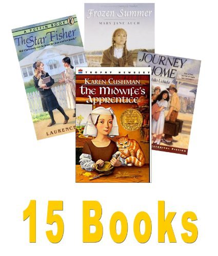 15 Historical Fiction Books for Grade 6 -8 : My name is not Angelica; A Journey Home; Frozen Summer; Forty Acres and Maybe a Mule; Foster's War; and One for All;Good Bye Vietnam; Midwife's Apprentice; Double Life of Pocahontas; The Starfisher; Shades of Gray; The River Between Us
