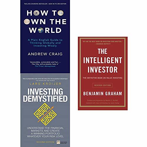 How to Own the World, Investing Demystified, Intelligent Investor 3 Books Collection Set. Description:- How to Own the World: A Plain English Guide to Thinking Globally and Investing Wisely It is time to get your money working for you. HOW TO OWN THE WORLD explains why you can, and must, learn about investment, and highlights the significant advantages you have over many finance professionals. This is both a personal finance book and a personal development book; by safeguarding your future wealth you are safeguarding your long-term health and happiness. Investing Demystified: How to create the best investment portfolio whatever your risk level Don't spend your time worrying whether you can beat the markets: you don't need to beat them to be a successful investor. By showing you how to build a simple and rational portfolio and tailor it to your specific needs, Investing Demystified will help you generate superior returns.With his straightforward and jargon-free advice, Lars Kroijer simplies the often complex world of finance and tells you everything you need to know - and everything that you don't need to worry about - in order to make the most from your investments. Intelligent Investor: The Definitive Book on Value Investing - A Book of Practical Counsel Over the years, market developments have proven the wisdom of Graham's strategies. While preserving the integrity of Graham's original text, this revised edition includes updated commentary by noted financial journalist Jason Zweig, whose perspective incorporates the realities of today's market, draws parallels between Graham's examples and today's financial headlines, and gives readers a more thorough understanding of how to apply Graham's principles.
