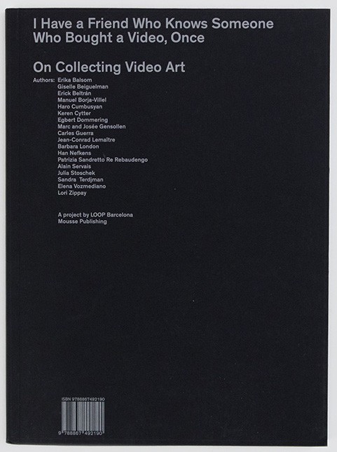 This book is the result of LOOP Barcelona’s long-standing engagement with pressing debates surrounding moving-image artworks. Following up on last year’s edition of the LOOP Talks, “Beyond Objects? A Debate on Engaged Attitudes Towards Collecting,” it brings together contributions by international curators, art critics, collectors, artists, and a lawyer to further the mission for a complete recognition of the medium. In an art market that demands materiality, video and film evade the traditional definition of “unique objects.” Generally perceived as ephemeral and even regarded with suspicion by many collectors and galleries, they are dismissed as too difficult to monetize. Drawing a historical trajectory that encompasses the introduction of the moving image into public museums first, and private collections later, this publication addresses a wide range of issues related to the production, distribution, display, and conservation of time-based art.