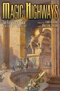 The third of three volumes. The Ultimate Grandeur. Fantasy and Science Fiction Grandmaster Jack Vance is very much a writer of the Space Age. His time 'traveling' the magic highways of his imagination spans the period bracketed by the final years of World War II and the Cassini Huygens probe reaching Saturn space in late 2004, the year he brought his magnificent career to a close.In those first thrilling, dangerous, heady days, science did seem to promise all the answers, and it was in a 'double' universe of the familiar workaday world and the utterly unlimited one of the imagination that the ever-practical yet romantic, diligently physics-savvy yet as often wildly improvisational Jack Vance worked.Even as he wrote tales set in the far future of his acclaimed Dying Earth, even as he produced mysteries and suspense stories of a much less fanciful kind, Jack's determined quest to become a 'million words a year' man saw him ranging a universe criss-crossed with busy interstellar highways: a network of flourishing trade and tourist routes leading to new frontiers, far-flung colonies, alien worlds, with ample room for exotic races, travelers, traders and scoundrels, even space pirates, ample opportunity for grand schemes of every kind.Magic Highways gathers sixteen of those early space adventures from that exciting first decade, spanning the years 1946 to 1956. In these frequently inventive, often surprising space operas, Jack takes us to vivid destinations along the vast interstellar highways of a future where anything is possible.Contents, 16 stories:Introduction: The Ultimate Grandeur • essay by Terry Dowling and Jonathan Strahan; Phalid's Fate (1946); -- Planet of the Black Dust (1946); -- Dead Ahead (variant of Ultimate Quest 1950) (1986); -- The Ten Books (1951); -- The Uninhibited Robot (variant of The Plagian Siphon) (1951); -- Dover Spargill's Ghastly Floater (1951); -- The Visitors (variant of Winner Lose All) (1951); -- Sabotage on Sulfur Planet (1952); -- The House Lords (1957); -- Sanatoris Short-Cut [Magnus Ridolph] (1948); -- The Unspeakable McInch [Magnus Ridolph] (1948); -- The Sub-Standard Sardines [Magnus Ridolph] (1949); -- The Howling Bounders [Magnus Ridolph] (1949); -- The King of Thieves [Magnus Ridolph] (1949); -- The Spa of the Stars [Magnus Ridolph] (1950); -- To B or Not to C or to D [Magnus Ridolph] (1950).Cover illustration: Tom Kidd.