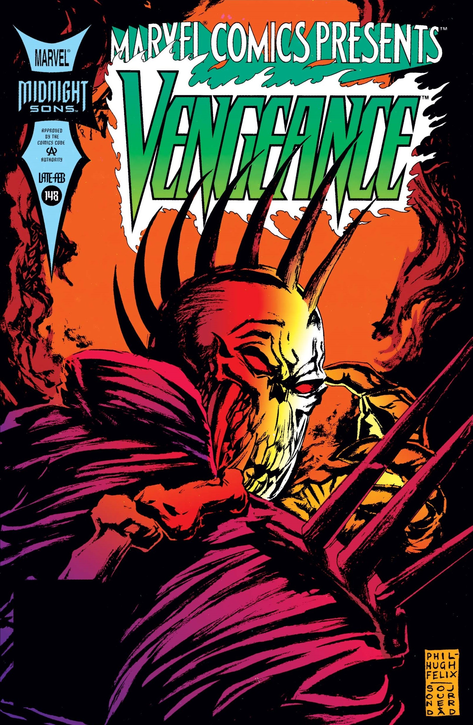 Tower of Blood Part 2: Vengeance Forsaken starring Vengeance, script by Chris Cooper, pencils by Reggie Jones, inks by Fred Harper. Hearts and Minds starring Captain Universe, script by Dan Slott, pencils by Bill Wiley, inks by Bud LaRosa. Triumph of the Hunter Black Panther, script by Don Hillsman and David Devries, art by Don Hillsman. 500 Guns starring American Eagle, script by John Figaroa, art by Ron Wilson.