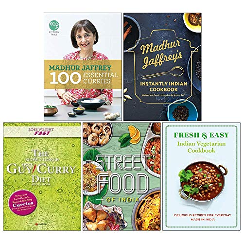 Please Note That The Following Individual Books As Per Original ISBN Supplied Individually by Publisher and As Per Cover Image In this Listing shall be Dispatched Collectively : My Kitchen Table, Madhur Jaffrey Instantly Indian Cookbook [Hardcover], Slow Cooker Spice Guy Curry Diet, Indian Street Food, Fresh & Easy Indian Vegetarian Cookbook 5 Books Collection Set My Kitchen Table- 100 Essential Curries Madhur Jaffrey is the world's best-selling author of Indian cookery books. Here, she has collected 100 curry recipes from dals to biryanis, vegetarian to meat, simple and elaborate. Everybody loves a curry - and this book has a recipe to suit every taste. Madhur Jaffrey's Instantly Indian Cookbook- Modern and Classic Recipes for the Instant Pot(r) For more than forty years, Madhur Jaffrey has been revered as the "queen of Indian cooking" (Saveur). Here she shares inviting, easy-to-follow recipes--some entirely new, others reworked from her classic cookbooks--for preparing fantastic Indian food in the Instant Pot. Lose Weight Fast The Slow Cooker Spice-Guy Curry Diet- Recipe Book Curry has become one of the most loved dishes in the world. Hot, mild, fragrant, sweet or nutty, the choices are endless. Inspiration for the curries in this book comes from around the world. FRESH & EASY INDIAN - STREET FOOD Fresh & Easy Indian Vegetarian Cookbook- Delicious Recipes For Everyday Made In India India is the country with the highest reported rate of vegetarianism in the world, and this book fittingly pays homage to its myriad vegetarian dishes. It contains a mouth-watering selection of curries, rice and grain dishes, pickles, and other foods.