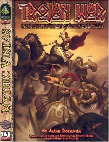 Green Ronin first delved into the Bronze Age in Roleplaying in the Biblical Era. Now the Trojan War picks up where Testament left off, bringing Homer's Iliad to life. Fight under Achilles for the honor of Helen or stand up with Hector and defend Troy with your life. The Trojan War gives you everything to bring Bronze Age Greece to life, An overview of the Trojan War, from the abduction of Helen to the sack of Troy. New classes like the charioteer, dedicated warrior, orator, runner, and seer. An update of the mass combat system that originally appeared in Testament. Flavorful spells like Divine Anger, False Omen, and Stygian Armor. Details on Bronze Age weapons and armor. A treatise on the Homeric World and an accompanying map. Descriptions and game stats for all the major characters, from Achilles and Hector to Odysseus and Aeneas. Advice on running campaigns and dealing with the gods. Full compliance with the 3.5 rules. Gods plot, chariots thunder, and warriors charge beneath the walls of Troy. Battle lines have been drawn. Which side are you on?