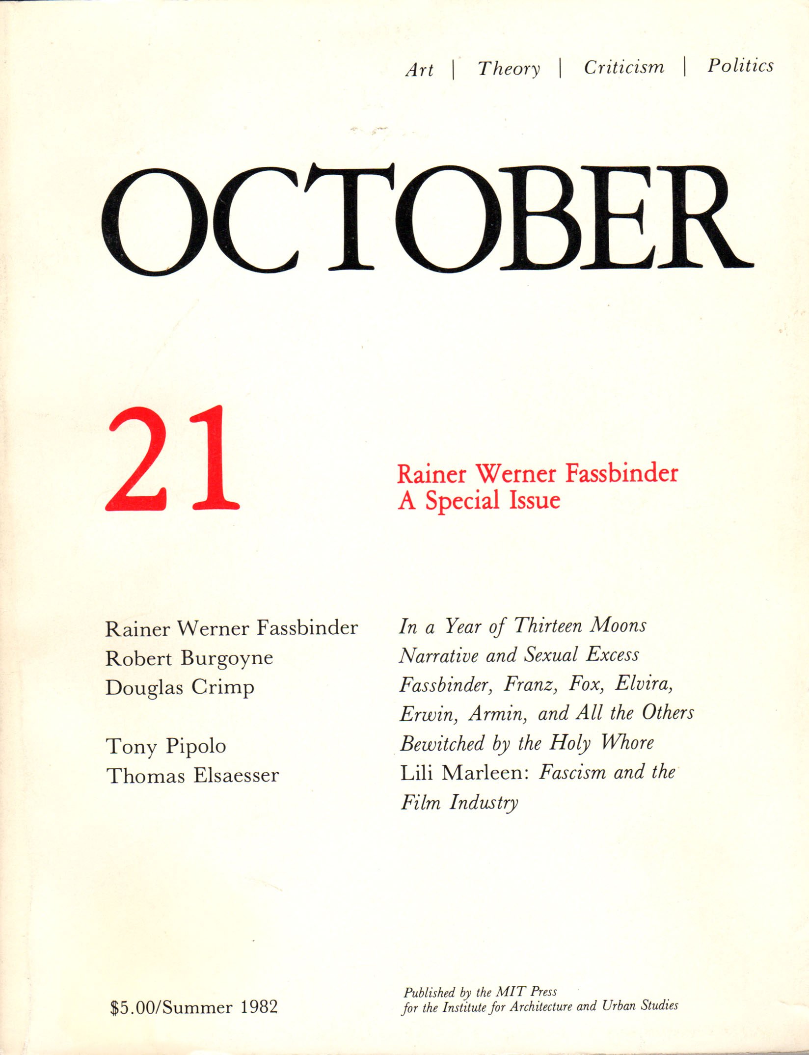 October 21: Art/ Theory/ Criticism/ Politics - Summer 1982: Rainer Werner Fassbinder - A Special Issue